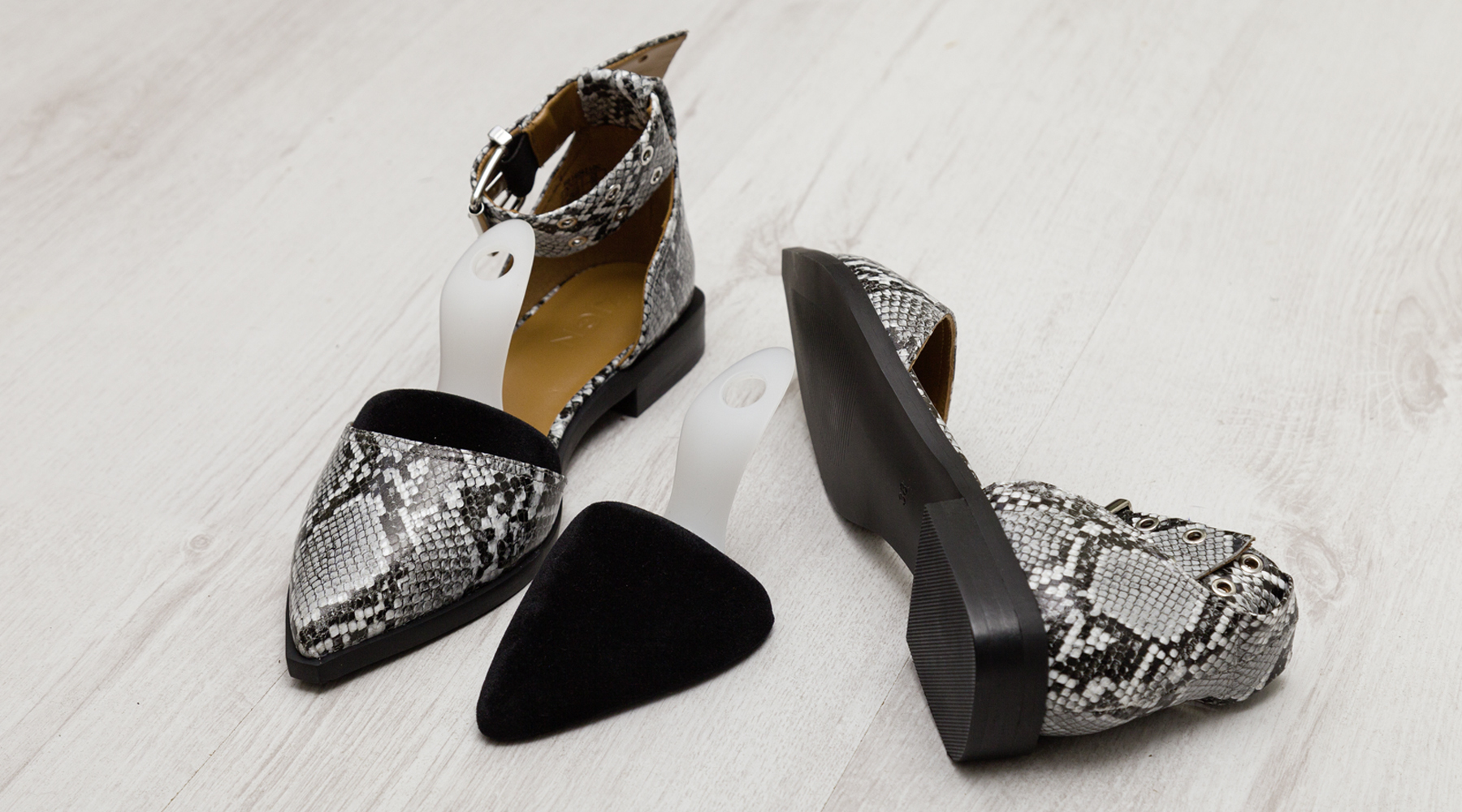 Den Schuhformer nach dem Tragen in die Schuhe legen, um Gehfalten zu verhindern.