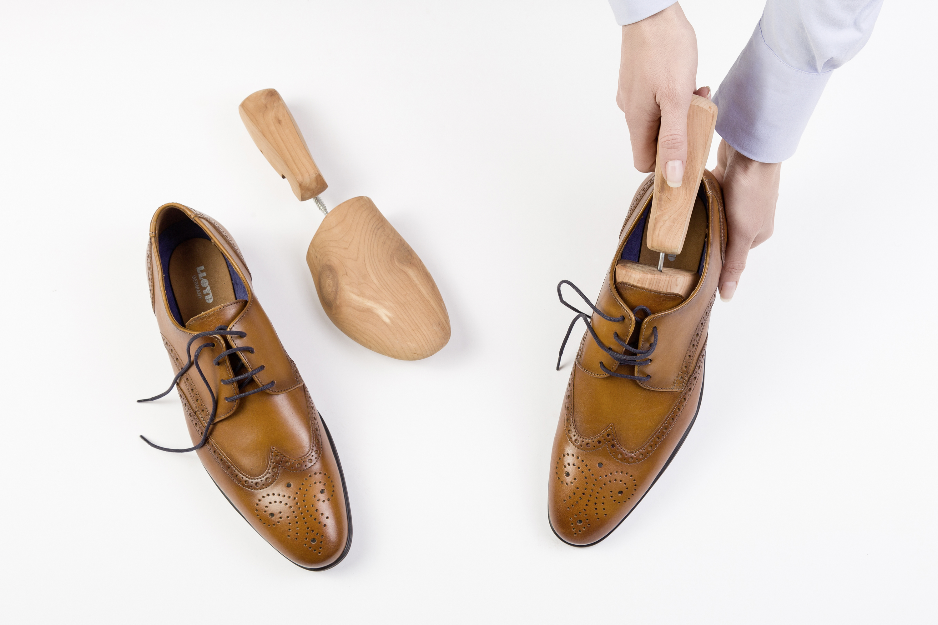 Durch die natürliche Abrollbewegung des Fußes, wird der Lederschuh während des Tragens abwechselnd gestaucht und gestreckt. Mit der Zeit bilden sich hierdurch Gehfalten und leichte Verformungen am Schuh. An diesem Punkt setzt die Anwendung von Schuhleisten an.