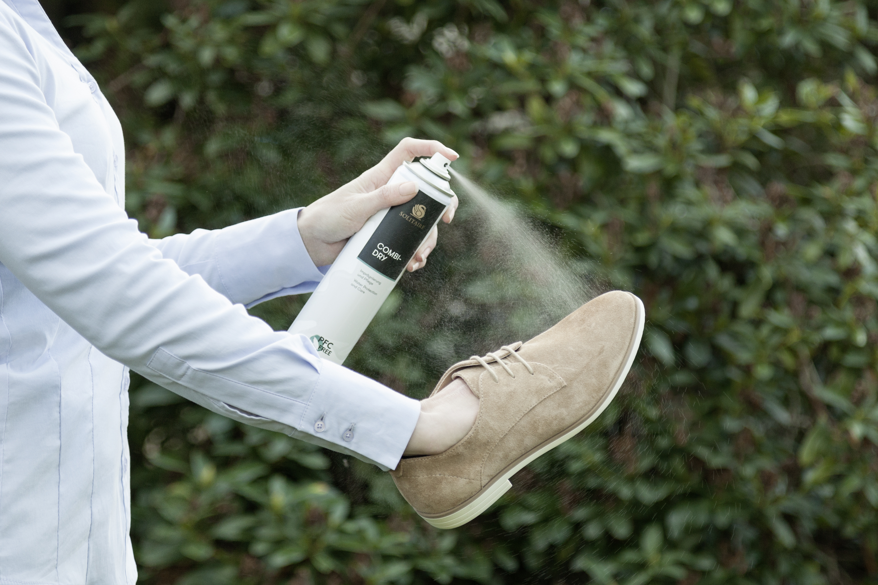 Vor der Anwendung Staub und Schmutz entfernen. Materialverträglichkeit an unauffälliger Stelle testen. Aus ca. 30 cm Entfernung gleichmäßig und dünn einsprühen. Nicht durchnässen. Leder nur im trockenen Zustand nachpolieren oder bürsten. Für optimalen Schutz Behandlung wiederholen.